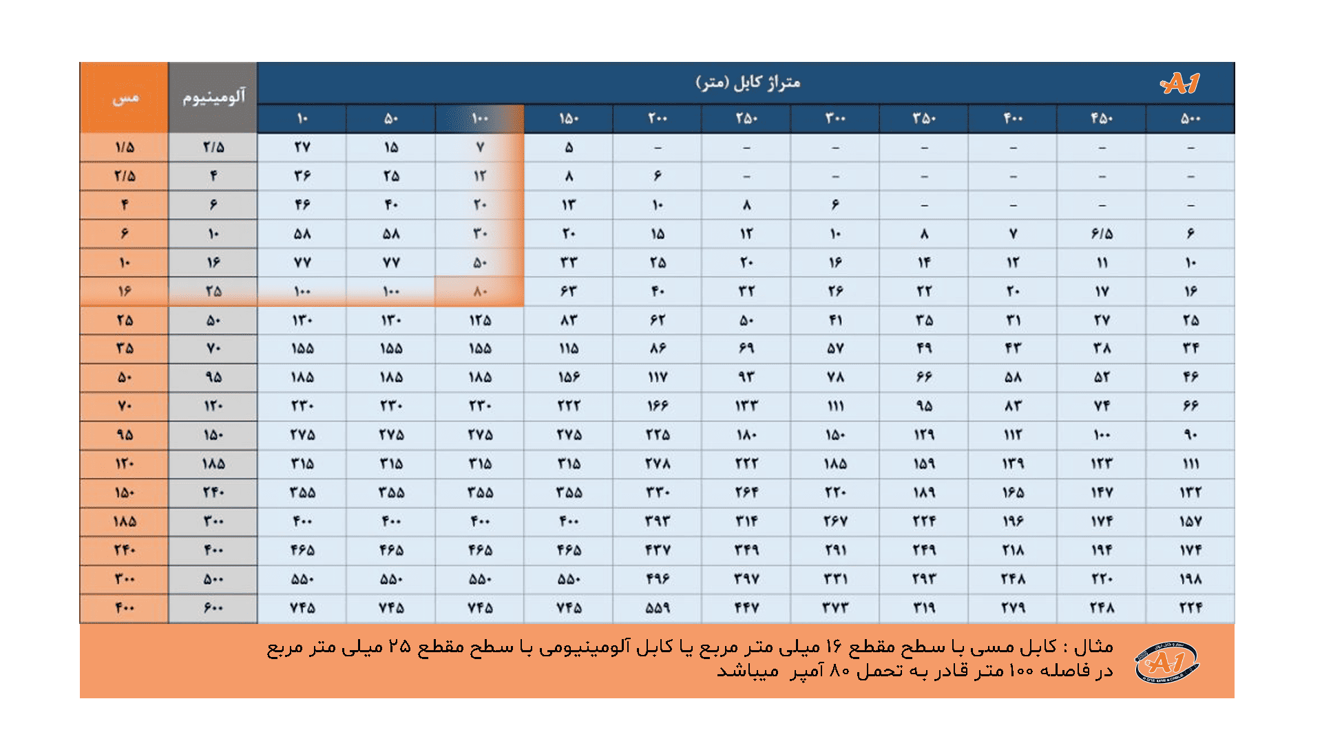 جداول جریان مجاز کابلها بر اساس سطح مقطع